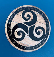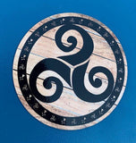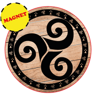 Magnet Triskell sur bois vieilli, un magnet breton souple avec visuel d'un Triskell sur une planche de bois.
