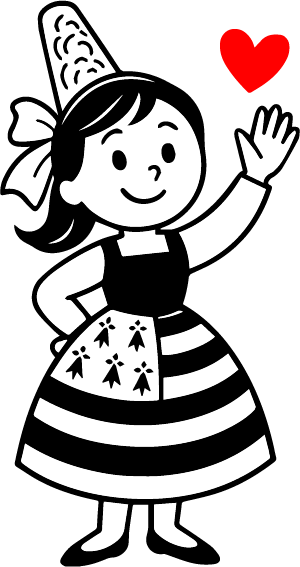 Illustré d'une Bigoudène souriante portant la coiffe traditionnelle et accompagné d'un cœur rouge symbolique, cet autocollant est une ode à la culture bretonne.