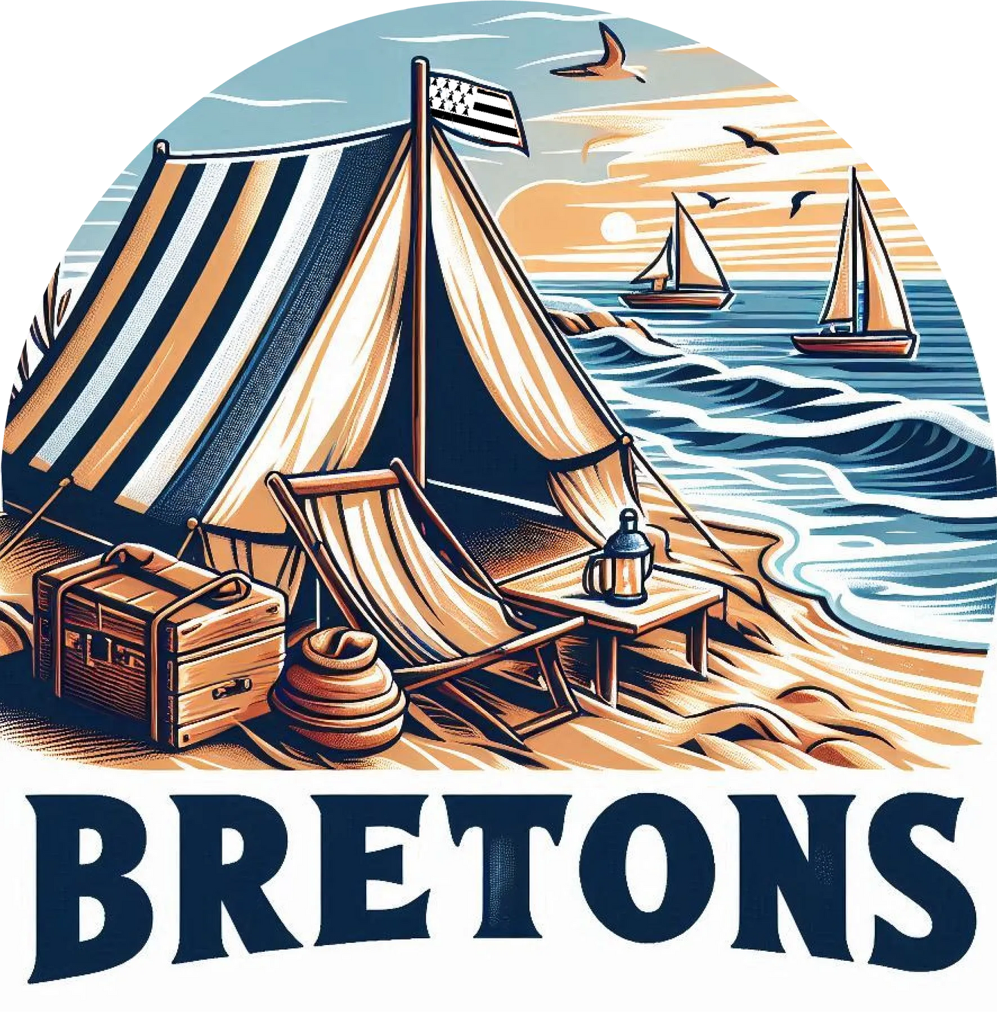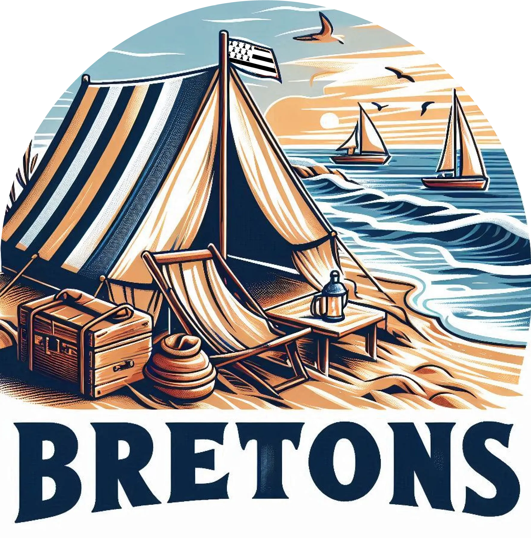 Plongez au cœur de la Bretagne avec notre autocollant "Campeurs Bretons" ! Ce sticker au design authentique représente une scène de camping idyllique sur une plage bretonne : une tente rayée, des bateaux à voile au loin, et le mot "Bretons" en lettres stylisées.