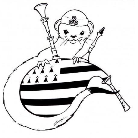 Aufkleber Hermelin mit Miki Sailor in Schwarz und Weiß