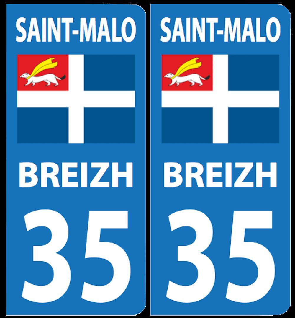 2 Aufkleber mit der Flagge von Saint Malo für Ihre Motorrad-Kennzeichen
