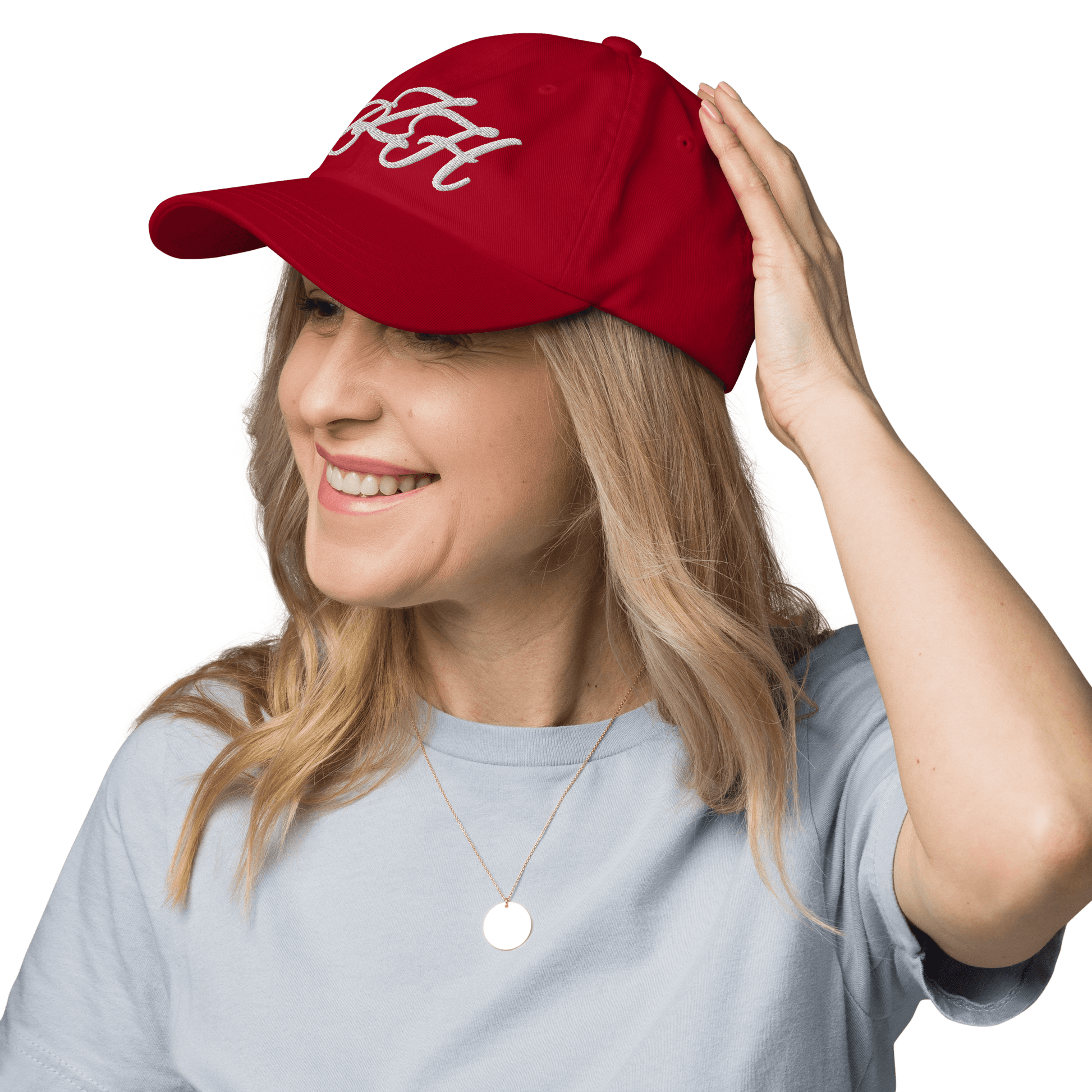 Diese Kappe ist in mehreren Farben erhältlich, sie ist unstrukturiert, hat 6 Felder und ein niedriges Profil. Es verfügt über 6 gestickte Ösen für bessere Belüftung und eine 7,6 cm lange Krone. Die Verstellung erfolgt über eine Lasche mit Antikschnalle.