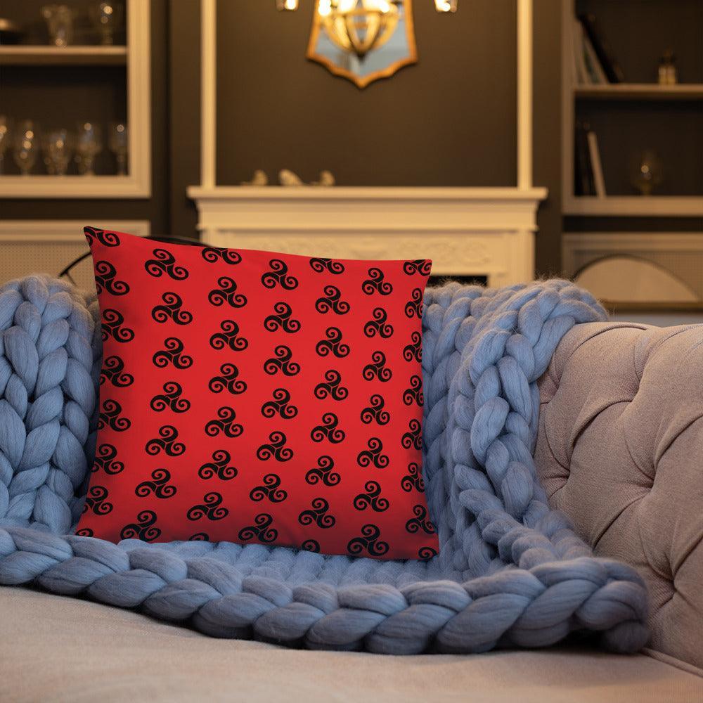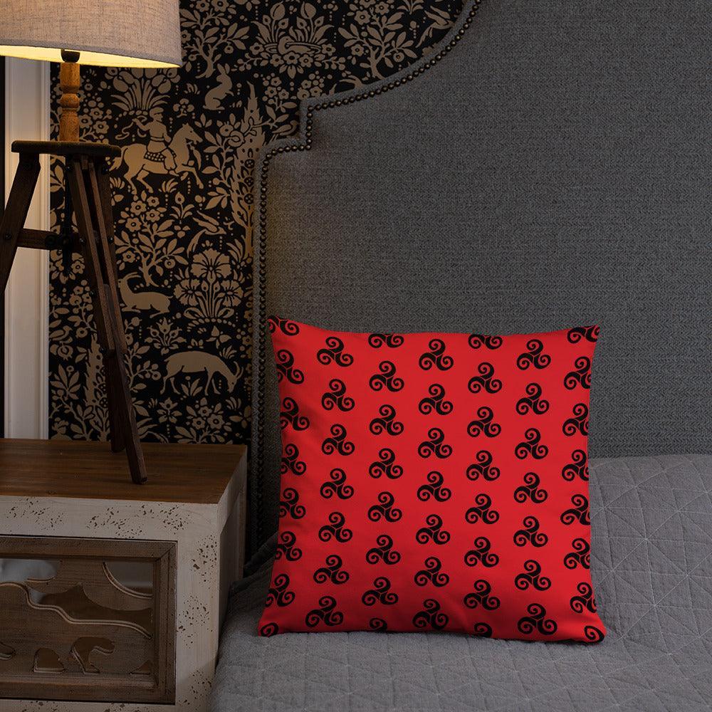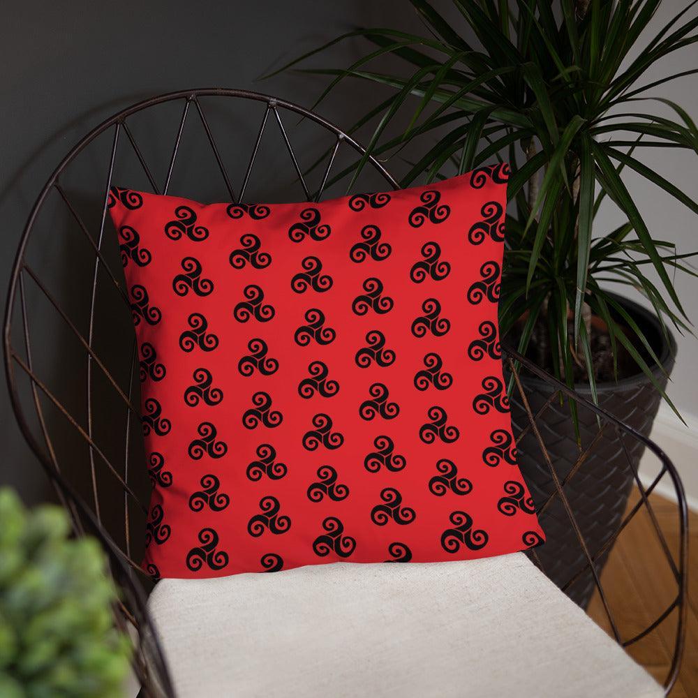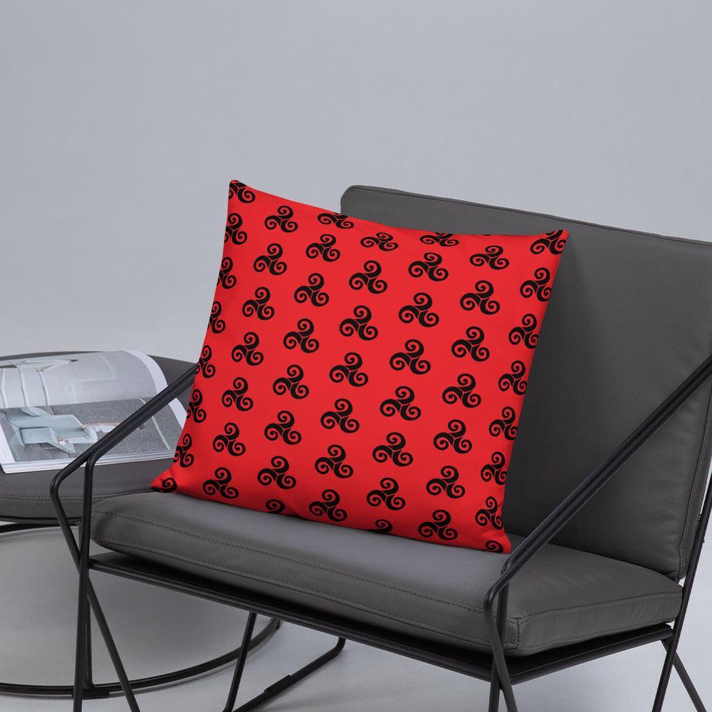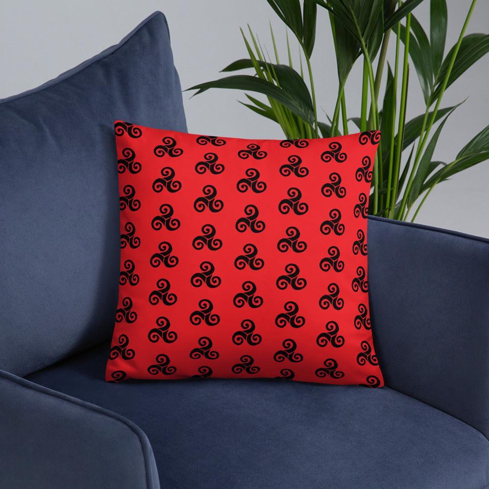 Rotes Kissen mit schwarzen Triskells
