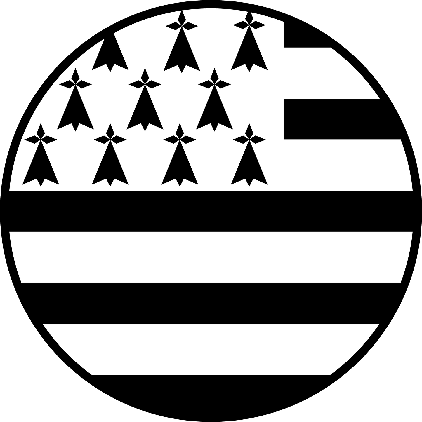 Großer runder vorgestanzter Aufkleber mit der bretonischen Flagge, dem berühmten Gwen Ha Du.