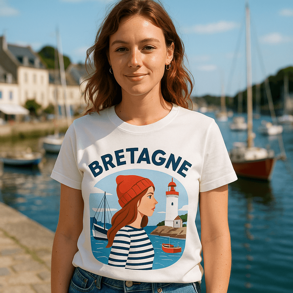T-shirt Bretonne au pays des phares – T-shirt femme marin 100 % coton
