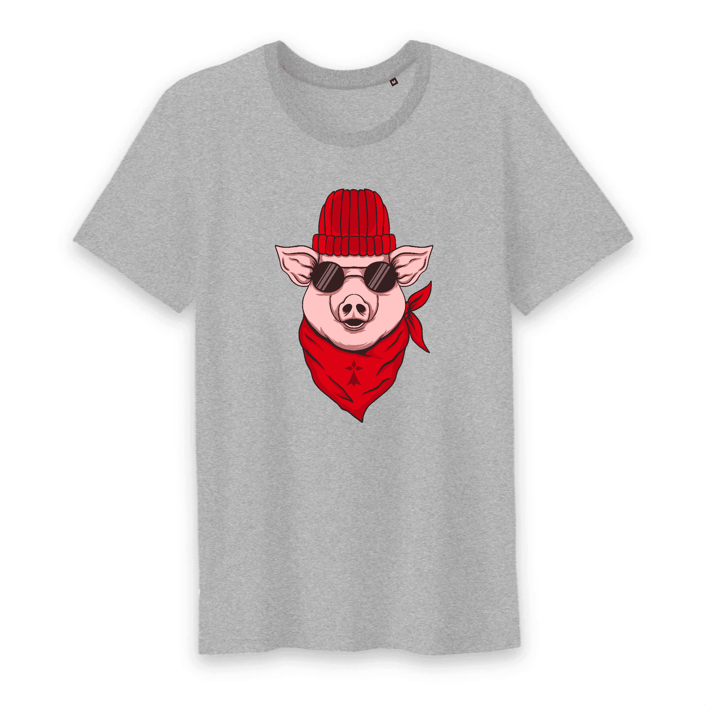 Herren-Rundhals-T-Shirt mit Schweinchenmotiv und rotem Hut aus 100 % BIO-Baumwolle