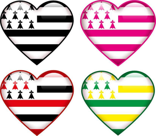 Sticker 4 Hearts Breton Flag Black & White and Colors