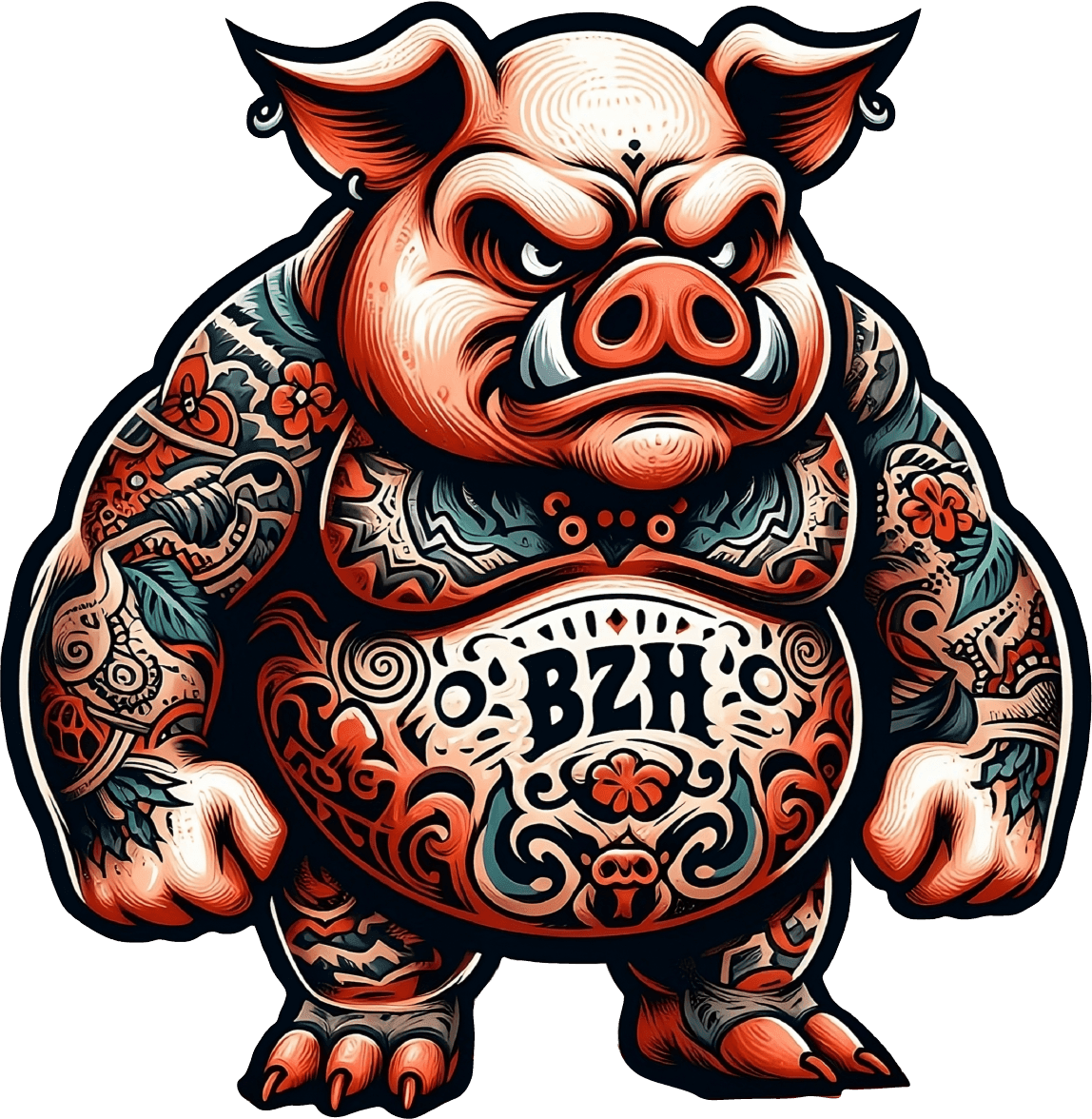 Craquez pour cet inquiétant autocollant représentant un cochon tatoué comme un Yakuza avec l'inscription BZH !