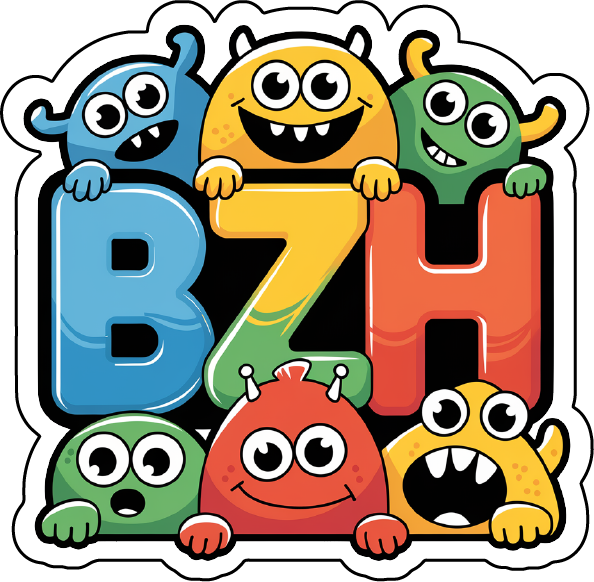 - 1 grand autocollant (10 cm x 9,7 cm) représentant les lettres BZH entourées de sympathiques monstres.
