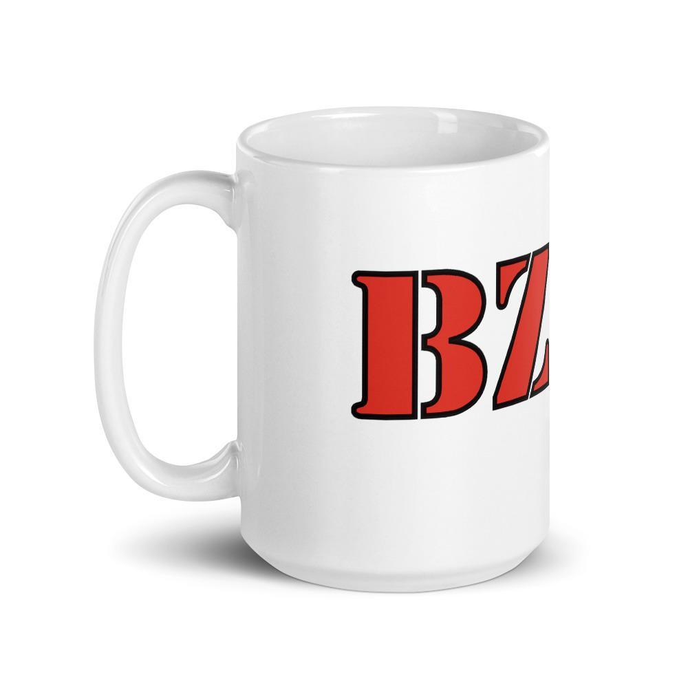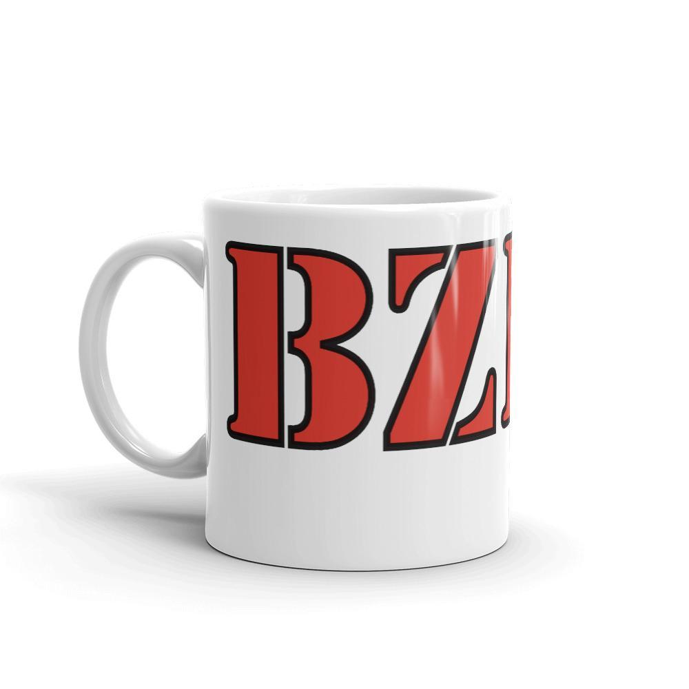 Brilliant White BZH Breton Mug with illustration of a Red BZH with a black outline with a triskell also in black.