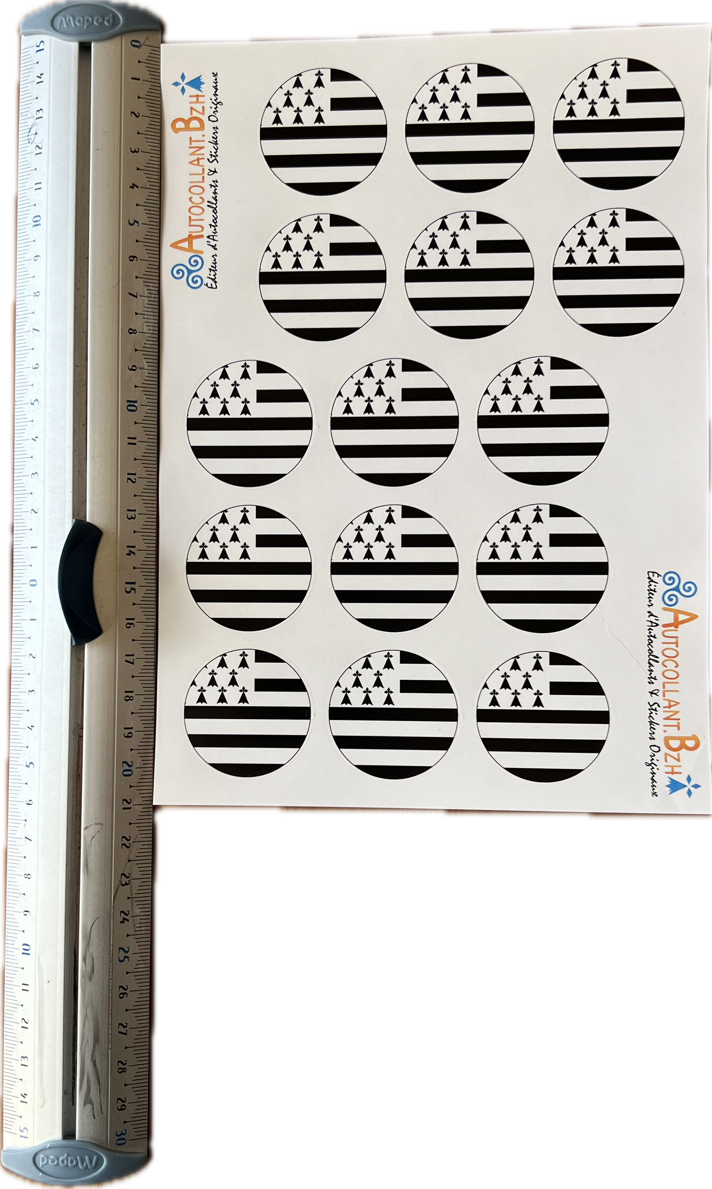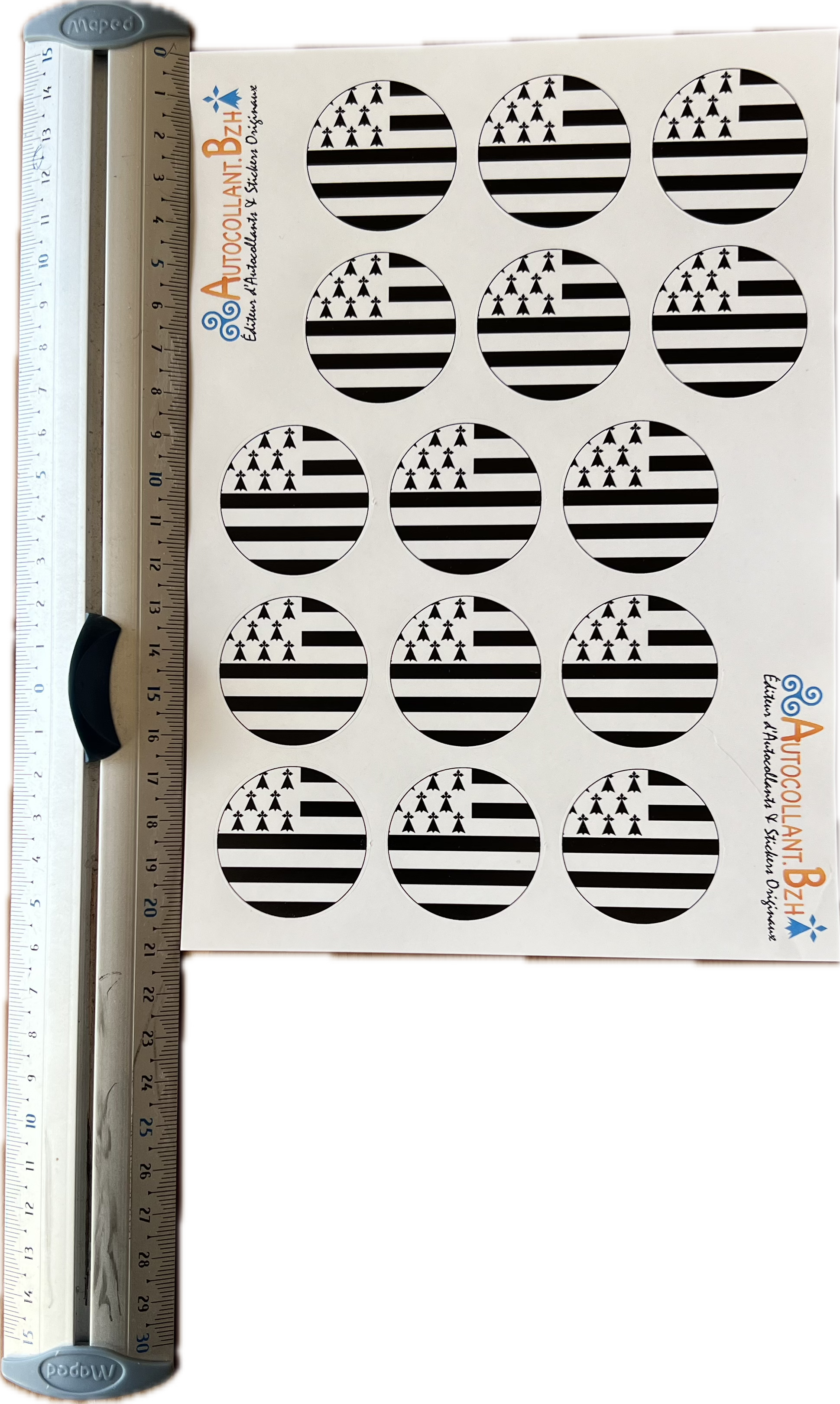 Sheet of 10 pre-cut stickers with the Breton Flag, the Gwen Ha DU, in a circle.