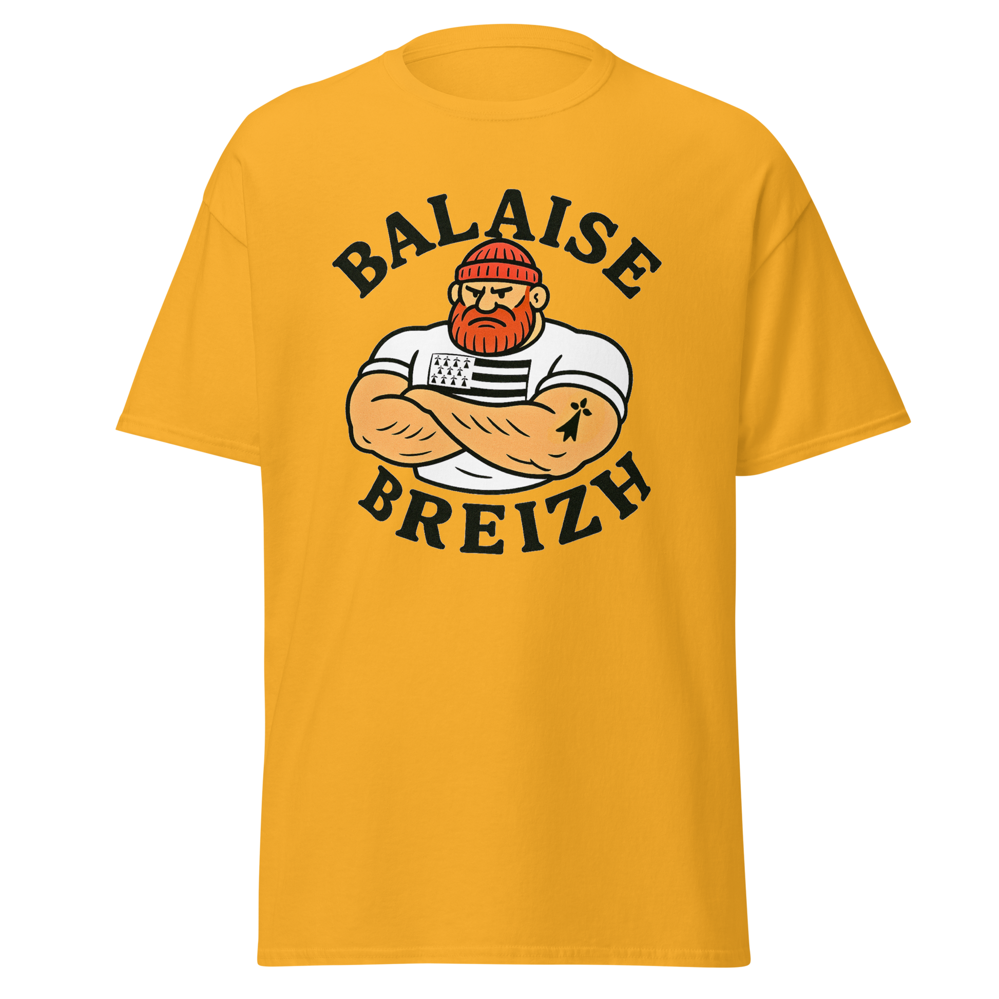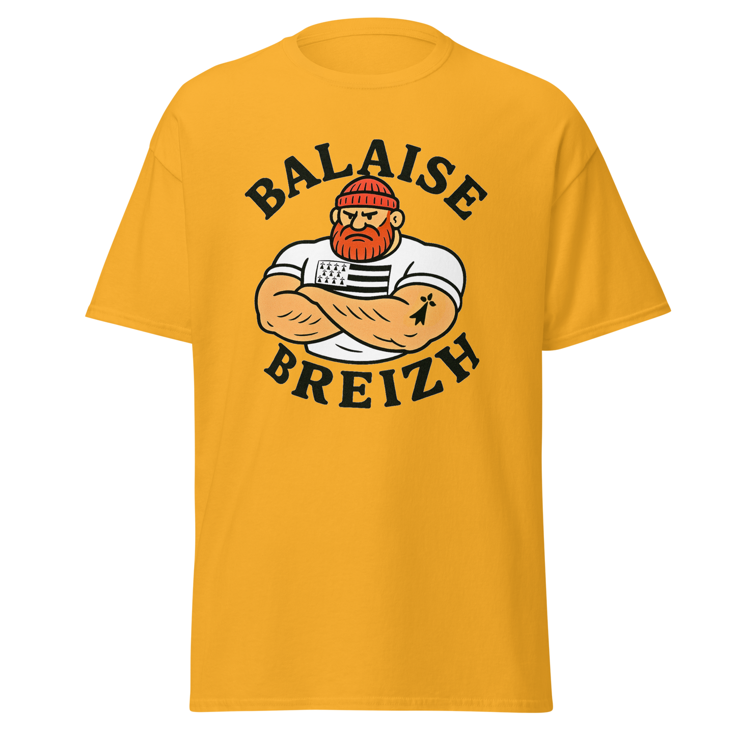 Soyez le mastodonte des festoù-noz et le roi des crêperies ! Enfilez ce T-shirt “Balaise Breizh” et dégainez votre plus beau Dañs Breizh. Conçu en coton peigné ultra-confort (170 g/m²), il vous suit partout – du port de Douarnenez aux Abers sauvages – sans jamais faiblir. Avec son visuel “Balaise Breizh” arborant le Gwen ha Du et un guerrier baraqué, affichez votre fierté bretonne en toute élégance.