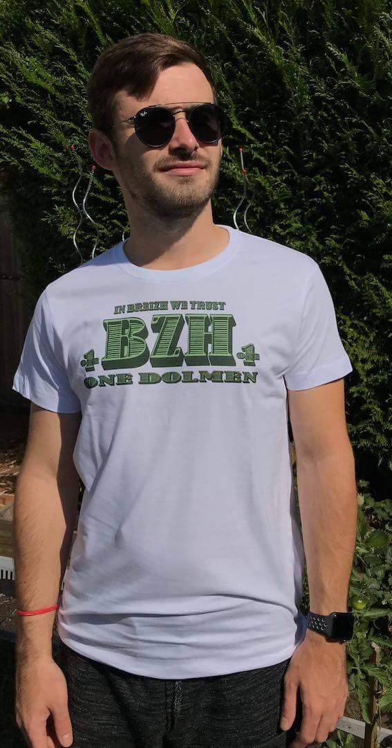 Breton t-shirt with a visual like the $1 bill but with the slogan "In Breizh We Trust" We have confidence in Brittany