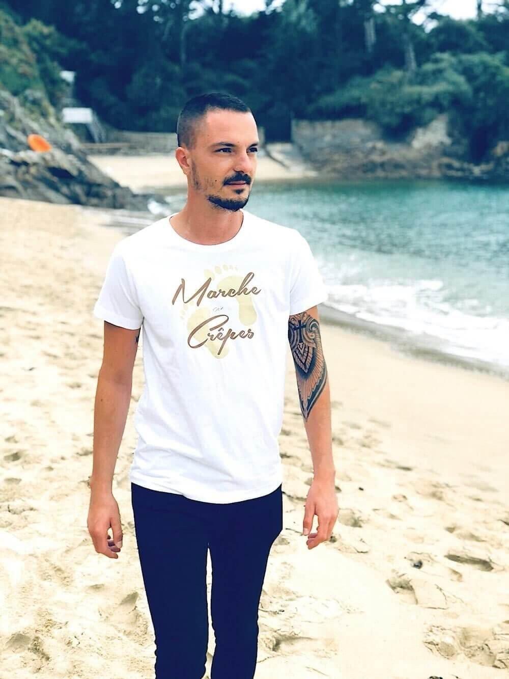 White t-shirt "Walk or Pancakes"