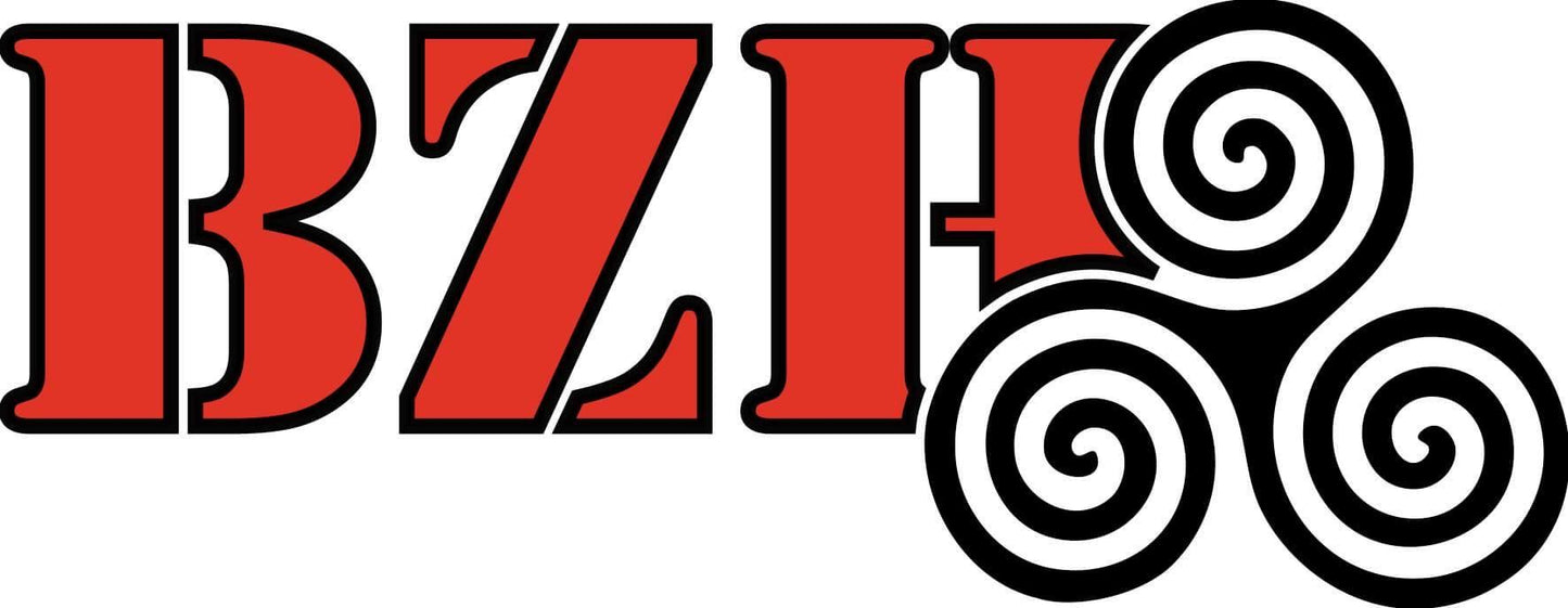 BZH t-shirt in white with BZH in red and elegant black outline accompanied by a black Triskell