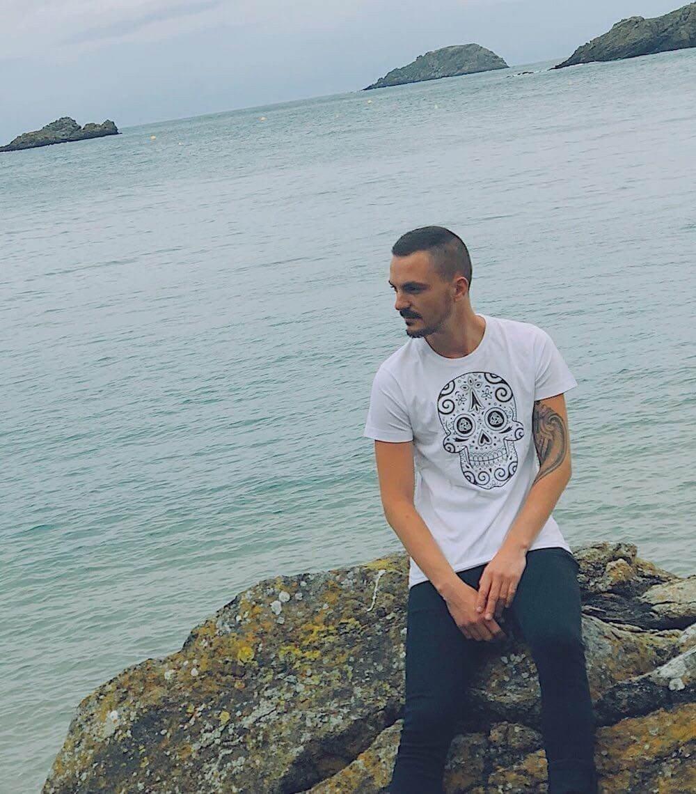 Original illustration of a Breton and Celtic skull printed on white t-shirt