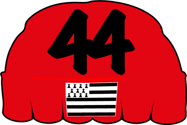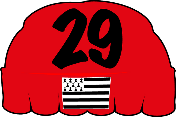 Un autocollant représentant un Bonnet Rouge sur lequel apparait le Drapeau Breton et le n° du département