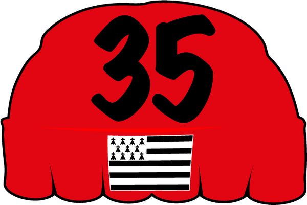 - Variétés : L'autocollant est disponible en cinq variantes pour les numéros des départements Bretons : 22 Cotes D'armor, 29 Finistère, 35 Ille et Vilaine, 44 Loire Atlantique, 56 Morbihan.
