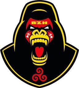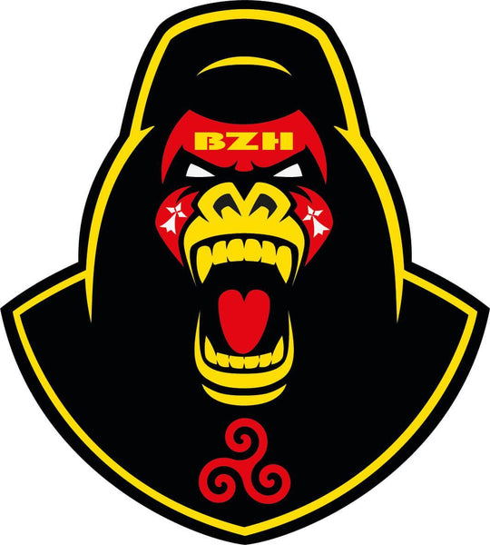 Autocollant Breton Tête de Gorille en Colère Rouge et Jaune. Ce Gorille avec ses symboles Bretons a l'air d'être vraiment en colère.