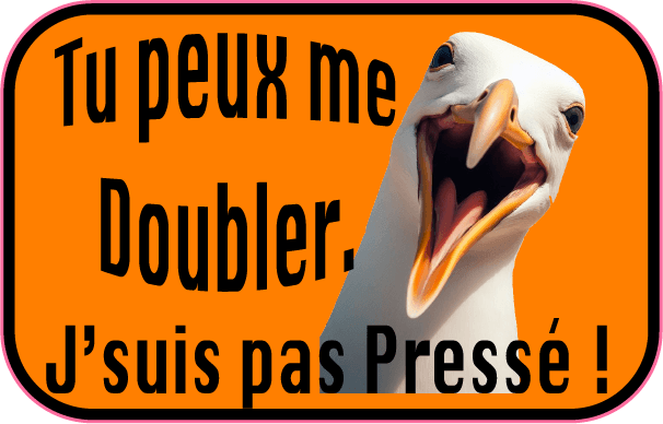 Cet autocollant représente une mouette rieuse qui dit "Tu peux me doubler j'suis pas pressé". Il est idéal pour décorer votre voiture, votre moto, votre vélo ou tout autre moyen de transport. Il est aussi parfait pour offrir à vos amis ou à votre famille qui partagent votre état d'esprit.
