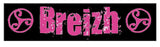 Sur cet autocollant Breton, Breizh (Bretagne) est dessiné façon pochoir, il est entouré de 2 Triskells