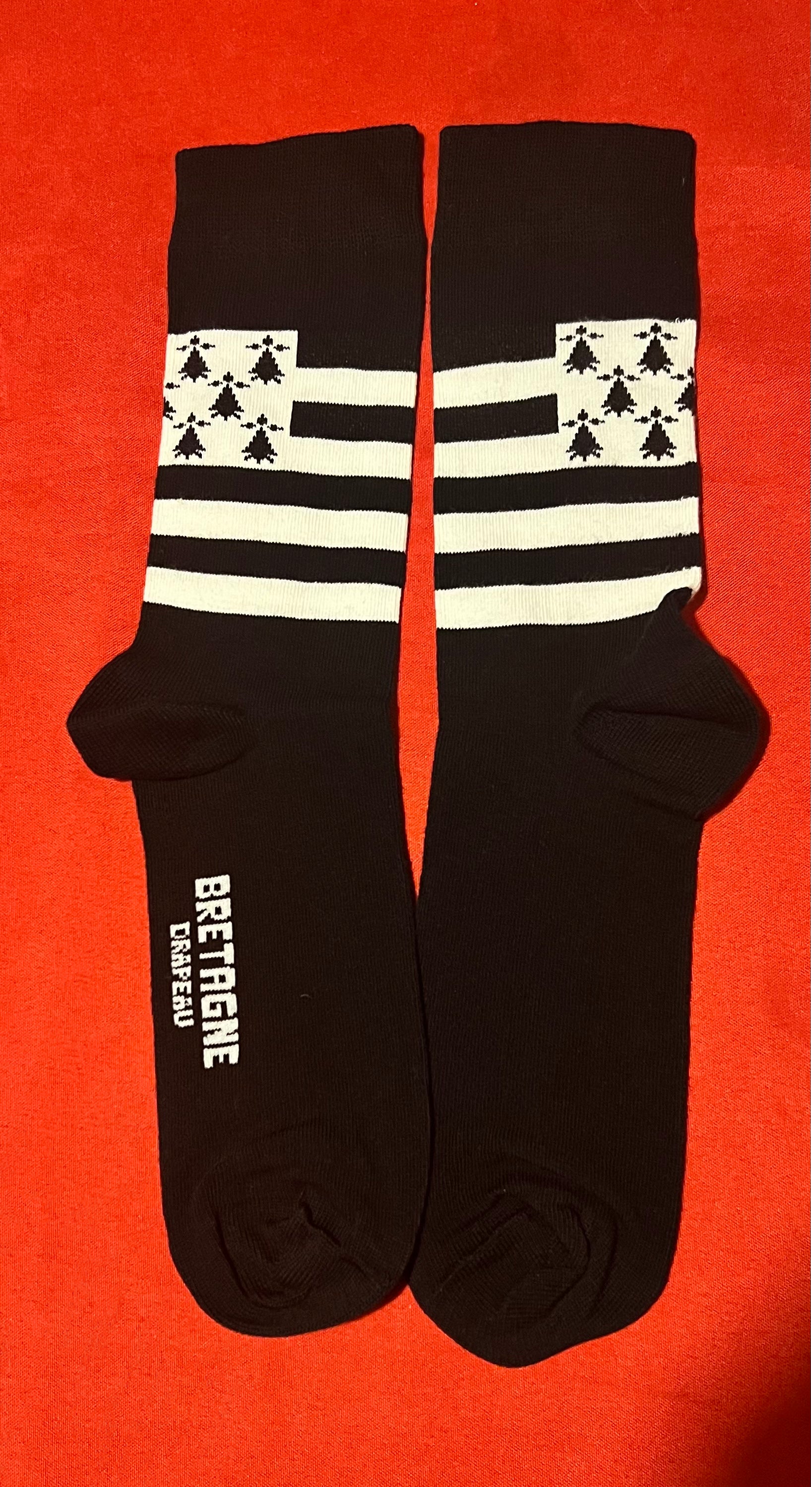 Affichez fièrement votre attachement à la Bretagne avec le drapeau breton élégamment tissé sur ces chaussettes.
