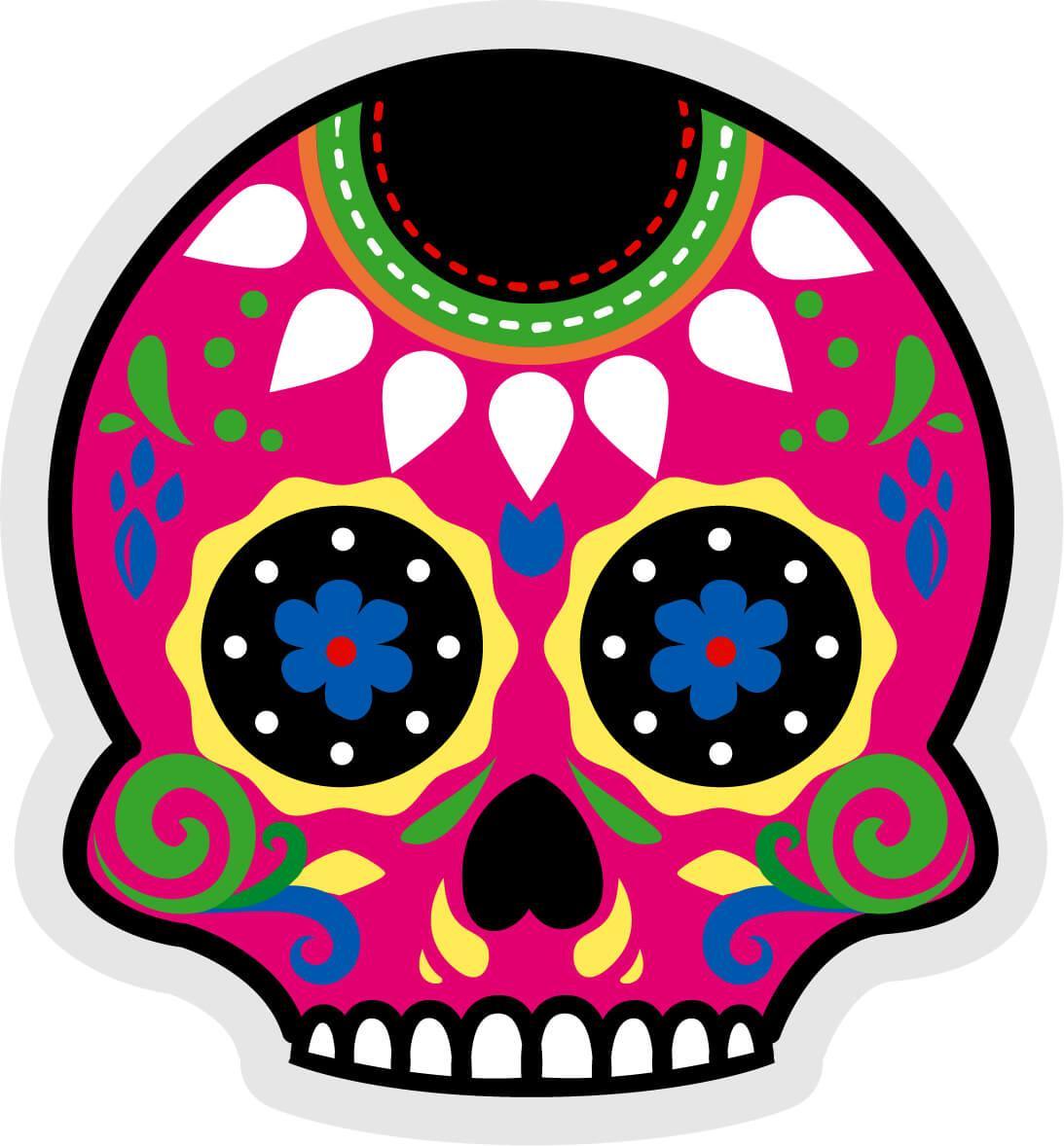 Cet autocollant est inspiré des célèbres calaveras Mexicaines pour le Jour de la Fête des Morts (Dia de los Muertos) qui habituellement a lieu le 2 novembre.