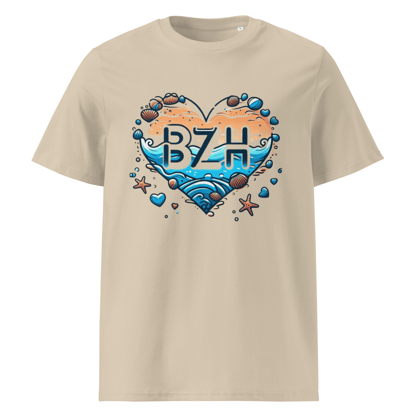 Évadez-vous en Bretagne avec notre t-shirt unisexe BZH Coeur Sable et Coquillages !