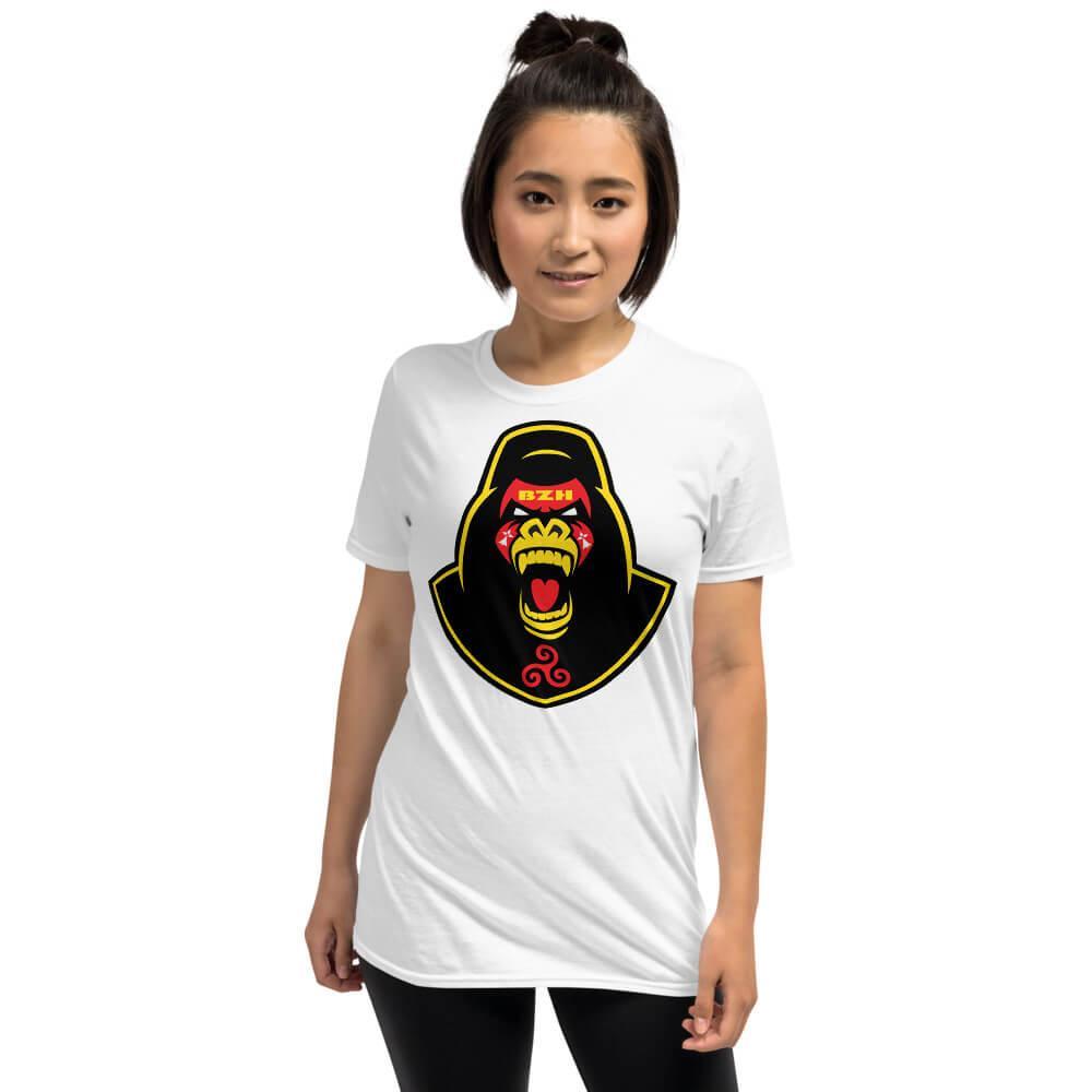 Tee-shirt Blanc avec l'illustration d'un Gorille estampillé Breton en Rouge et Jaune