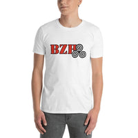 Tee-shirt BZH en blanc avec BZH en rouge et élégant contour noir accompagné d'un Triskell de couleur noire
