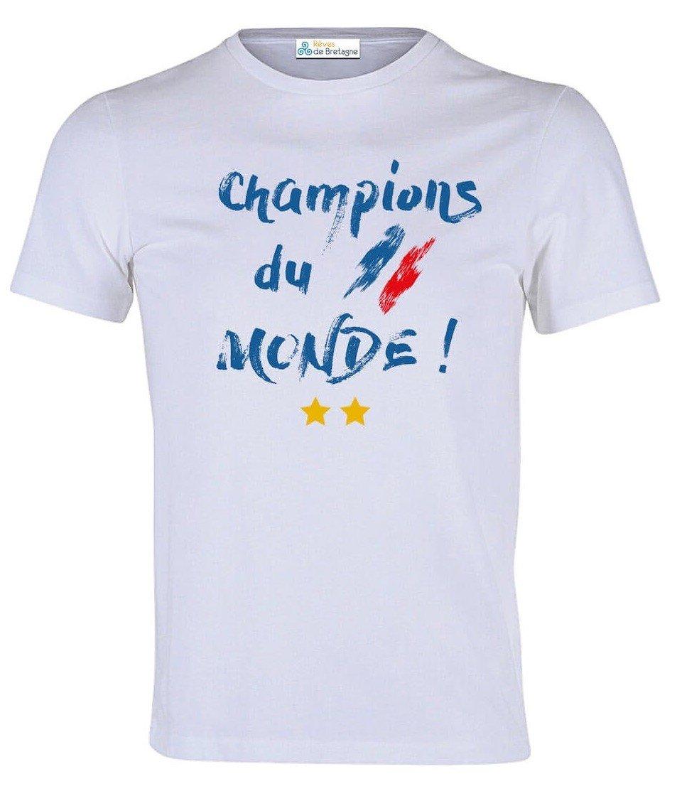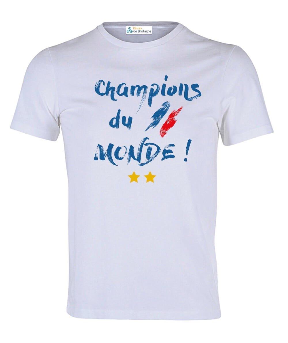 Tee-shirt blanc Champions du Monde avec 2 Étoiles